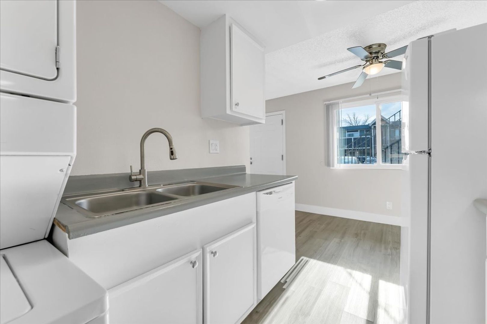 Our units offer classic charm with a modern update! Features include new laminate flooring, Google Nest thermostats, private patios, modern fixtures, central heating at no cost to our residents, and your own full-size washer/dryer for convenience. This unit features a quaint patio for private enjoyment of outdoor time!